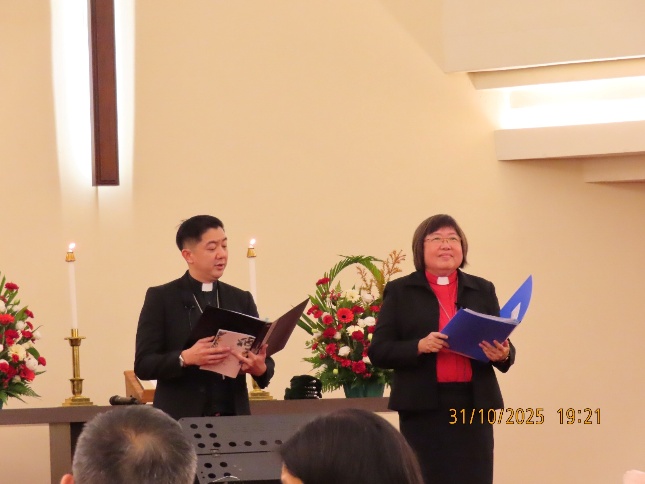 在凭信心领受了罗会督的祝福后,我们同唱路德写的【主神圣灵请降临】来结束聚会。会众对这诗歌比较陌生,唱起来音不顺,也不凖,有赖电风琴司的带领,每一次唱到最后两句【哈利路亚】的时候,就唱得很好了。这经验使我明白这诗歌的信息【我主圣灵请降临,,,,使我众合成一群, 各方各土万国语言,同声歌颂我主我神圣名】。我们须来自不同堂会,有讲不同方言,在圣灵里,经过调和,我们是合一的。